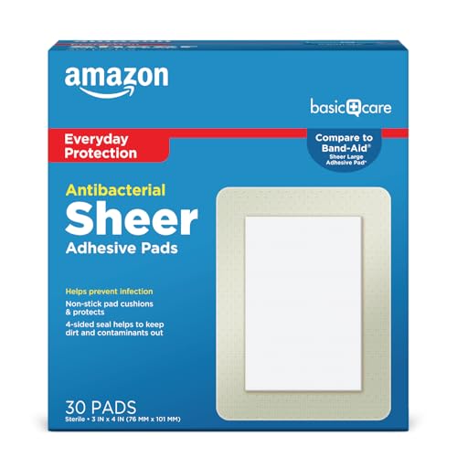 If you're seeking comfort and protection for minor cuts and scrapes, the Amazon Basic Care Sheer Adhesive Pad Bandages are just what you need! These extra-large (3 x 4 inches) non-stick pads are crafted from soft, flexible material, ensuring a comfy fit that won't irritate your skin. The unique design seals on all four sides, effectively keeping dirt and contaminants out, so your wounds can heal safely. With 30 bandages in each box, you'll have plenty on hand for any minor injuries. Whether for home, travel, or a first aid kit, trust these reliable bandages to cushion and protect your skin!